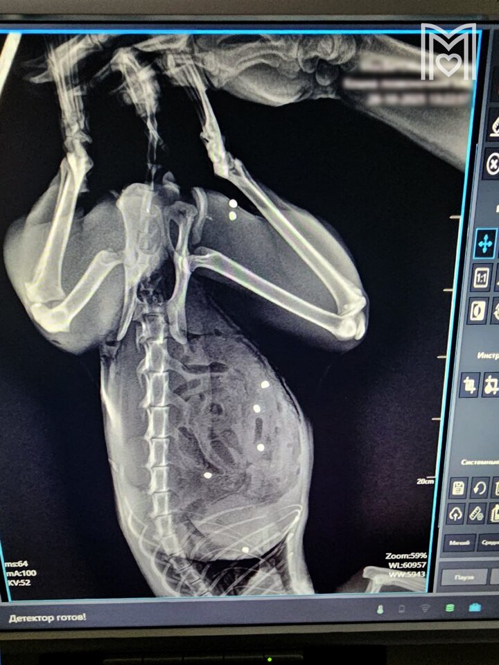 Выяснилось, что у животного пробит кишечник в 24 местах и в двух местах — селезенка. Так же пули попали в грудную клетку и мышцы бедра. Хирург немедленно приступил к операции, которая продлилась больше трех часов. В итоге почти безнадёжный пациент был спасён.