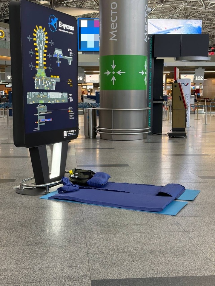 Тех, кто в аэропорту с ночи, можно опознать без проблем- они не сидят, а лежат. Кто просто на полу, кто на ковриках для йоги. Кстати, коврики раздают бесплатно.